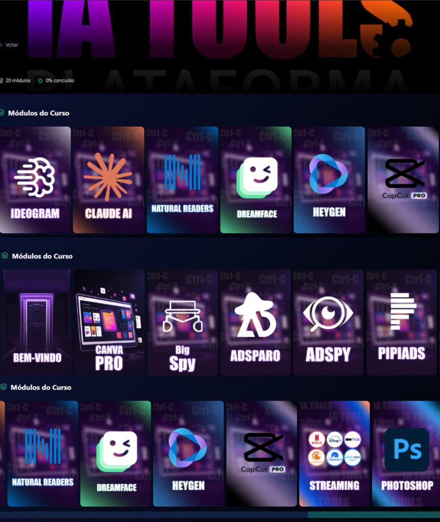 - Acesso completo e ilimitado as 100 principais ferramentas do mercado digital